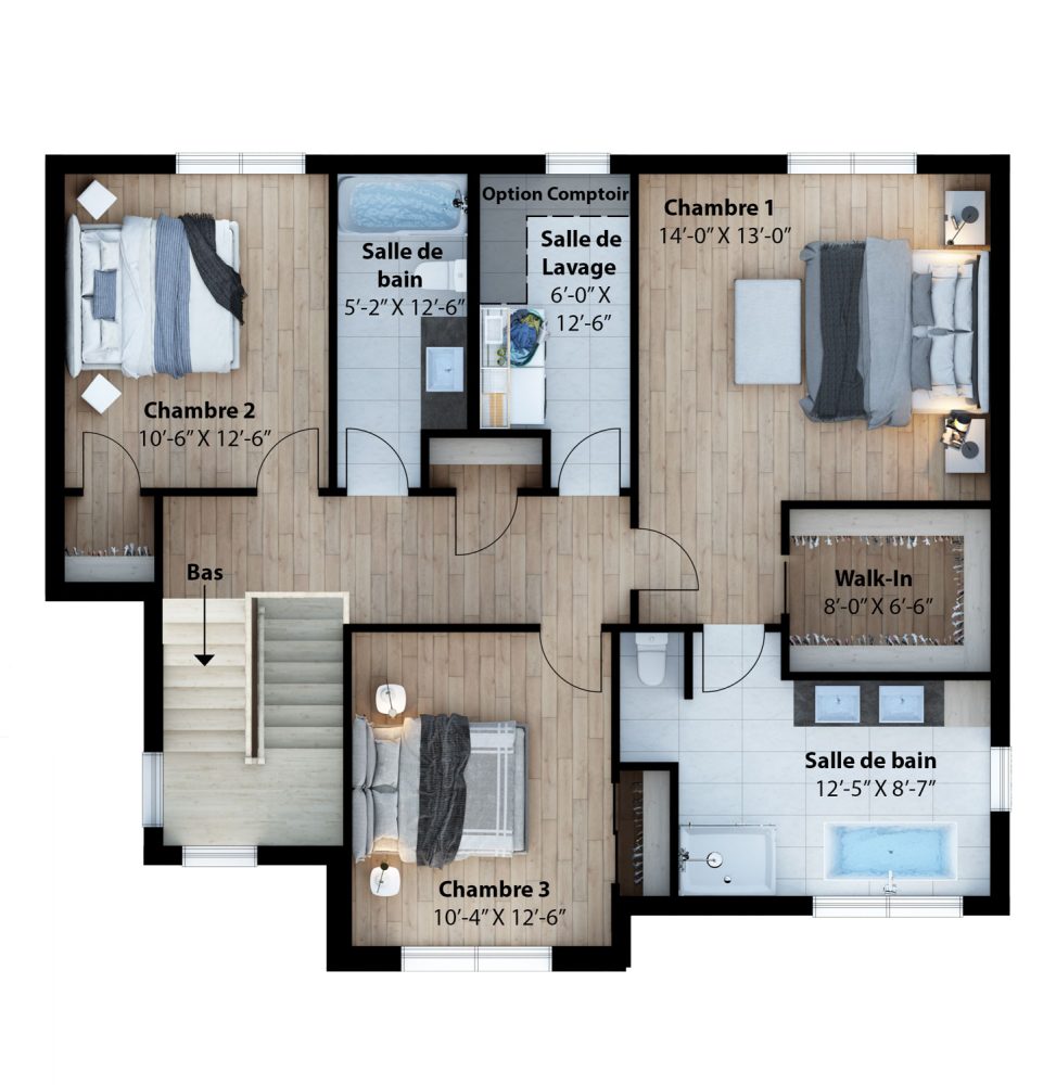 *Ce modèle pourrait ne pas être offert dans certains projets en fonction des grandeurs de terrains disponibles.